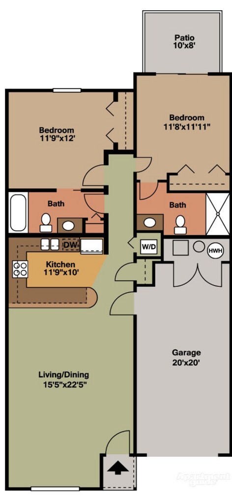 WAITLIST ONLY- 2 Bedroom/ 1 Bathroom Garden Apa... - Floorplan 11 WAITLIST ONLY- 2 Bedroom/ 2 Bathroom Garden Apa...