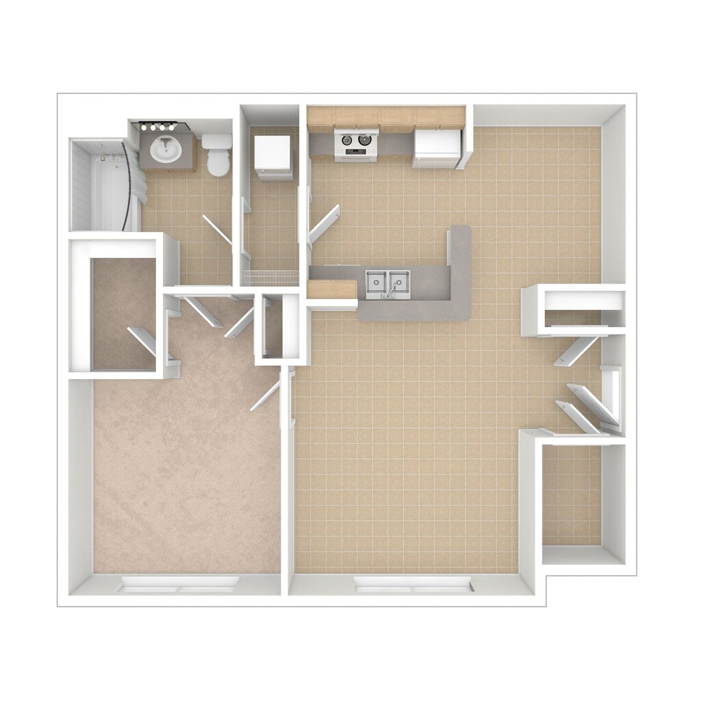 1 Bed, 1 Bath, 665 sq ftModel Gallery