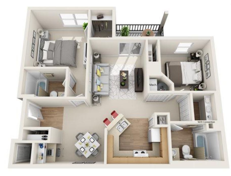 3 Beds, 2 Baths, 1011 sq ftModel Gallery