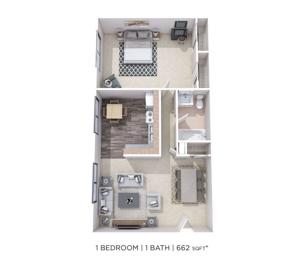 1 Bed, 1 Bath, 591-662 sq ftAvailable NowModel Gallery