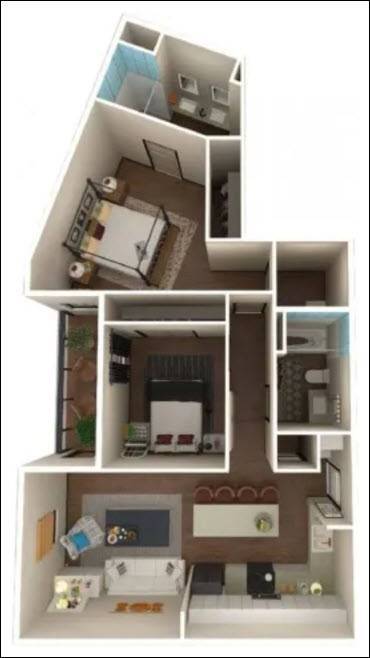 2 Beds, 2 Baths, 1367 sq ftLargest 2 BedroomThis is the largest 2 Bedroom at this PropertyModel Gallery