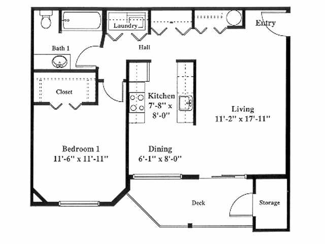 1 Bedroom, 1 Bathroom - Floorplan 1 ![]()