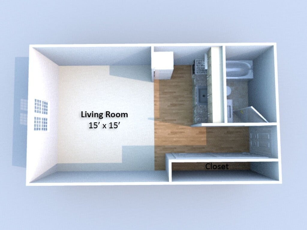 Studio, 1 Bath, 405 sq ftAvailable NowModel Gallery