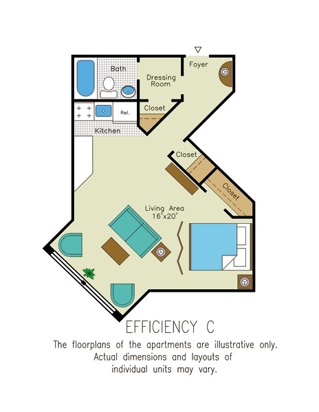 Studio, 1 Bath, 480 sq ftAvailable NowModel Gallery
