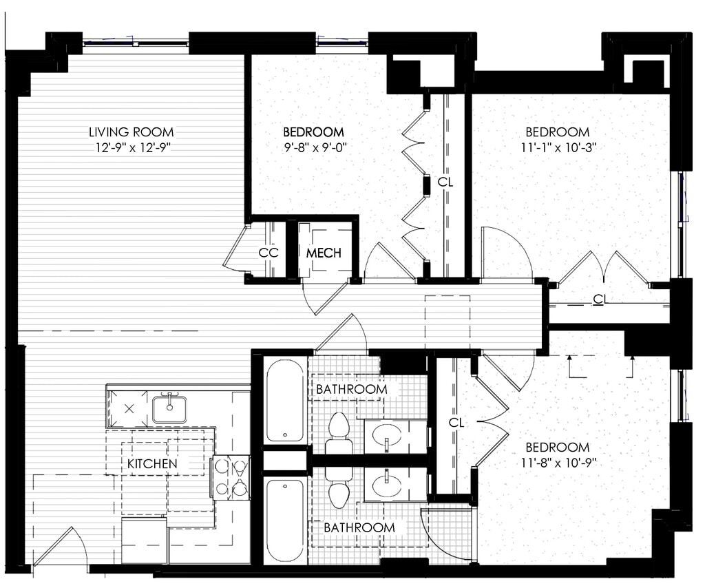 2 BR - Floorplan 1 3 Bedrooms