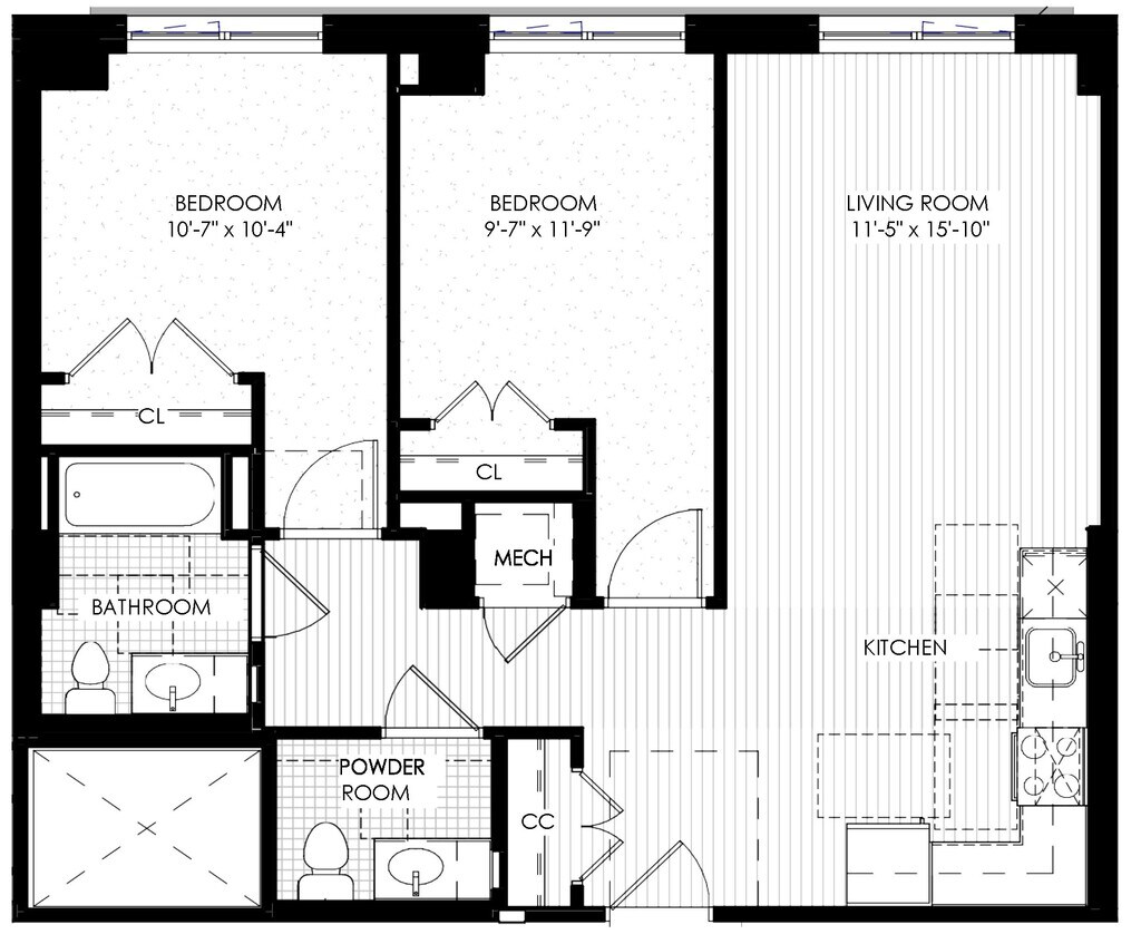 1 BR - Floorplan 1 2 Bedrooms