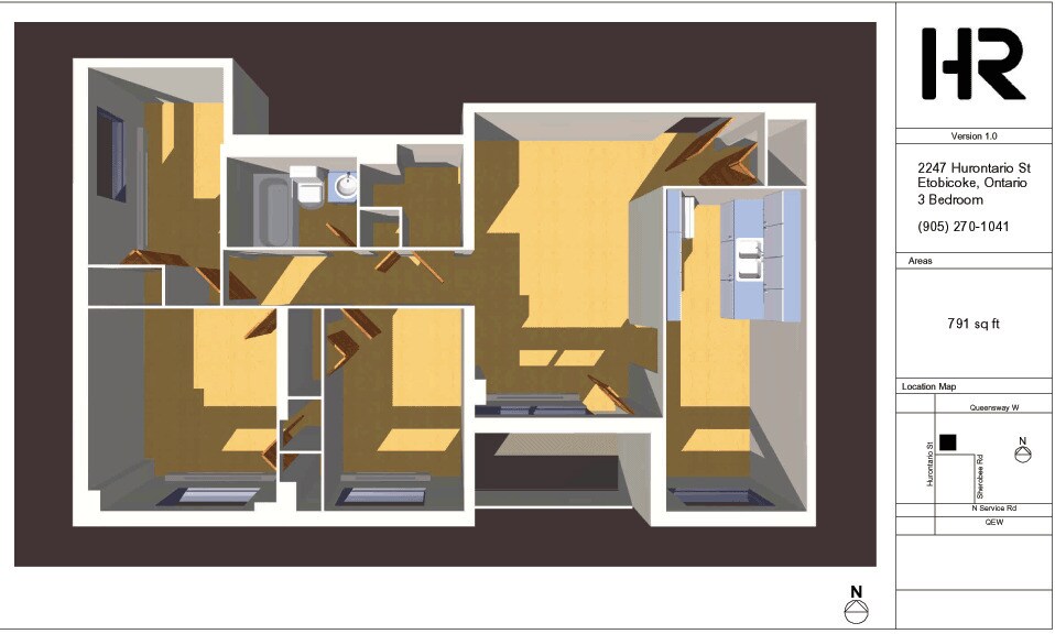 Apartment Model: Three Bedroom$2,6953 Bedroom, 1 Bath, 791 sq ftAvailable November 1, 2025Three Bedroom - Floorplan 1