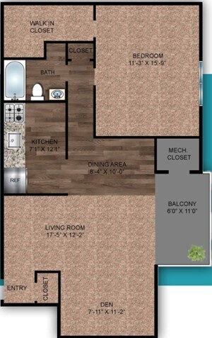 Apartment Model: A4-1BD/1BA with DenCall For Rates1 Bedroom, 1 Bath, 850 sq ftUnavailableA4-1BD/1BA with Den - Floorplan 1 2 Bedrooms