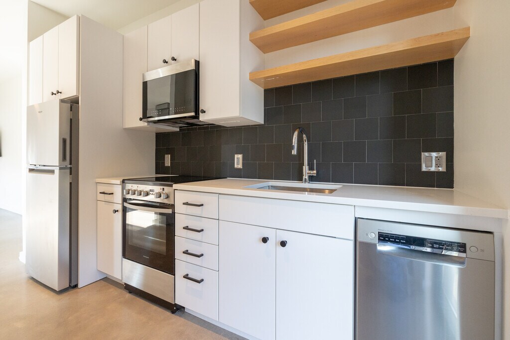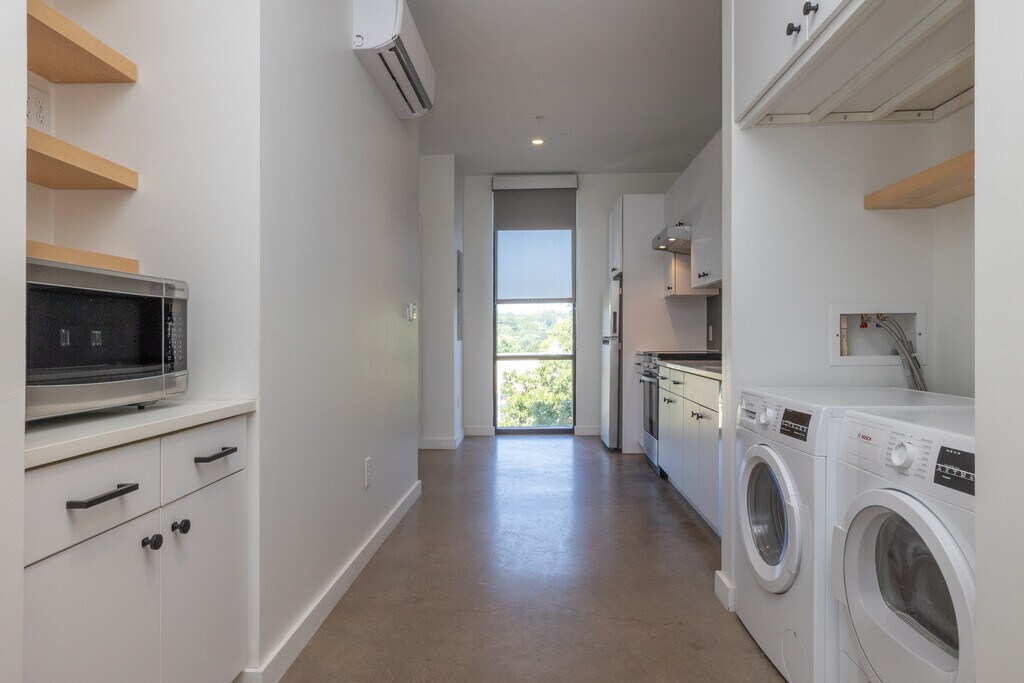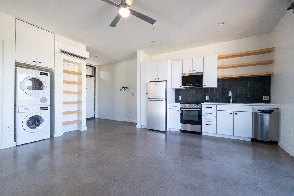 RadView is a dynamic place for people to fully inhabit the River Arts District. Twenty-six studio apartments with southwestern views are perched on the 3rd and 4th floors. Whether you're just starting out on your own, an artist looking to live close to work, an essential worker trying to jettison the long commute, a downtown professional fleeing an impersonal suburban development or a retiree looking for a home in the heart of Asheville, Radview will suit your needs. Our well crafted, highly efficient apartments focus on making home an elegant and comfortable oasis to relax in after an active day in the community.