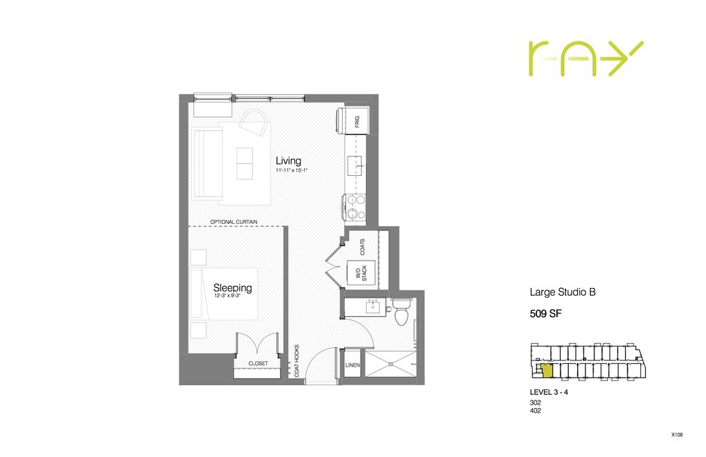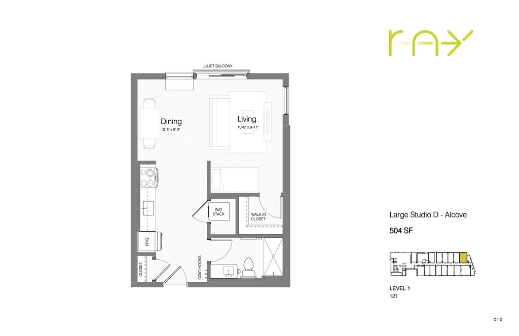 Medium Studio C - Floorplan 1 Apartment Unit: 120Apartment Model: Medium Studio C$1,218Studio, 1 Bath, 452 sq ftAvailable NowStandard Studio C