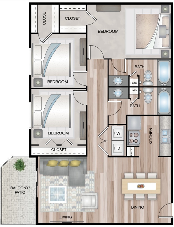 1 Bedroom to 3 Bedroom Apartments at RBBC currently range from $899 to $1,449