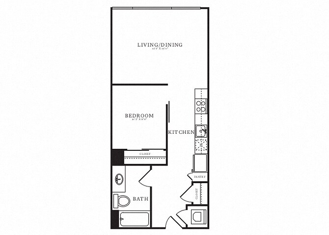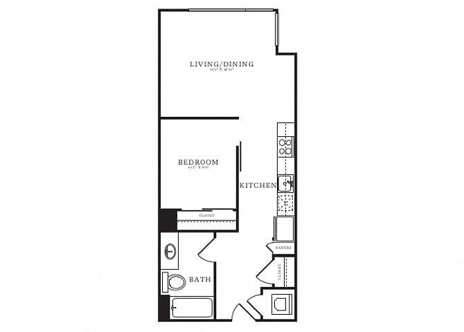 Apartment Model: Jr 1 Bed/1 Bath-B1A.3From $1,9041 Bedroom, 1 Bath, 560 sq ftAvailable Now![]()