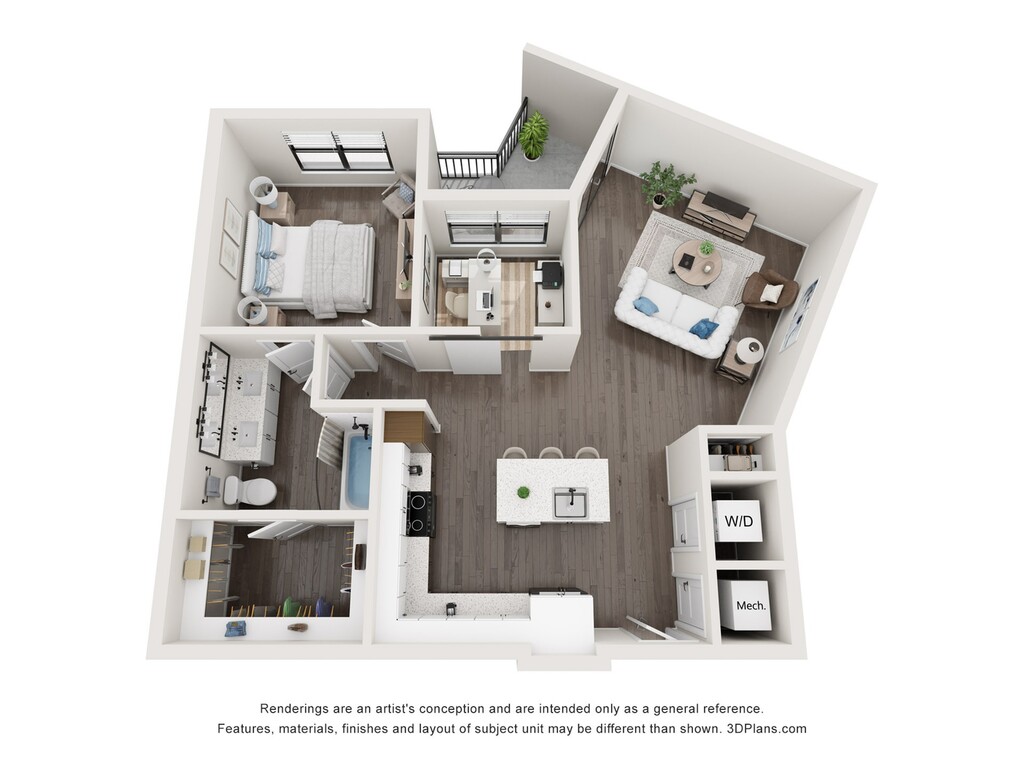 1 Bed, 1 Bath, 734 sq ftModel Gallery