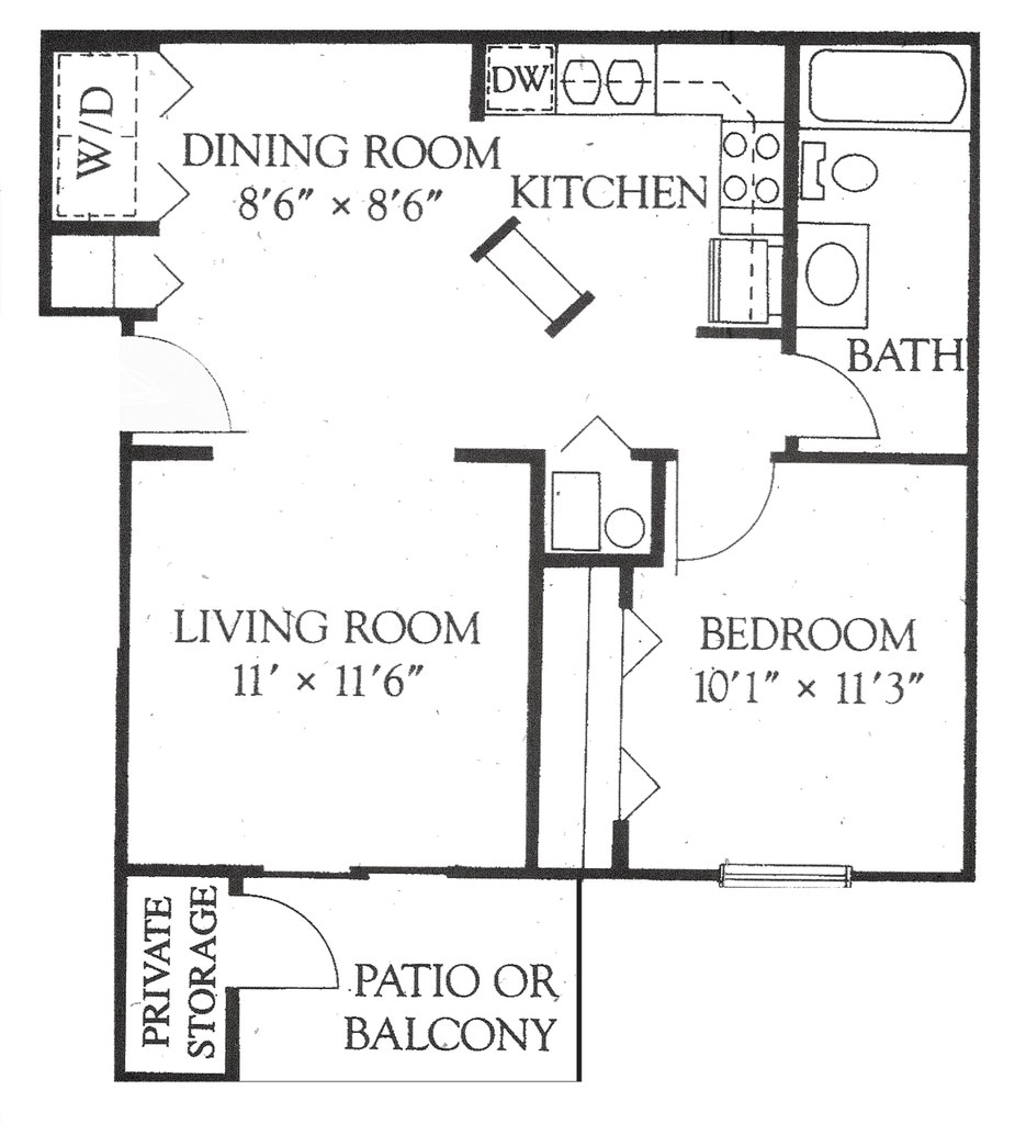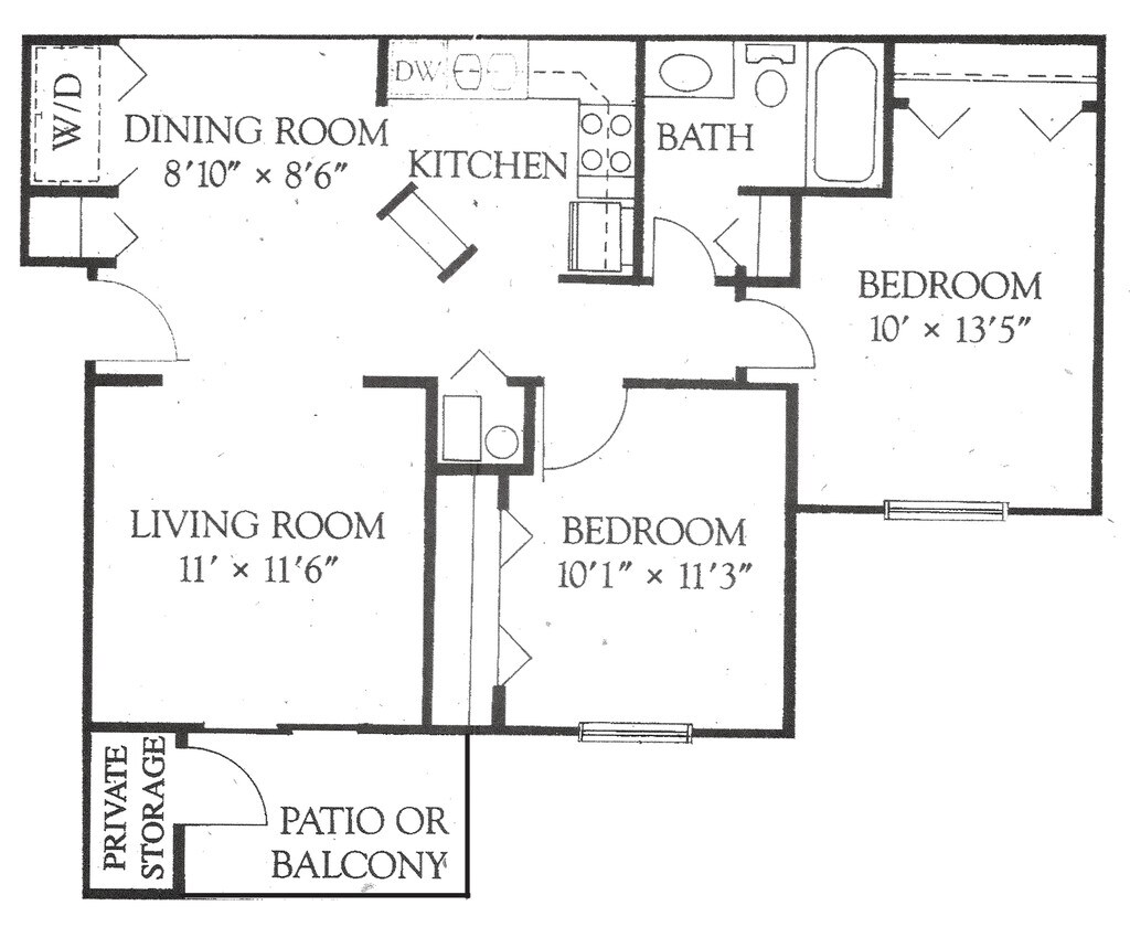 Apartment Model: 2BD/1BA2 Bedroom, 1 Bath, 777 sq ftUnavailable2BD/1BA - Floorplan 1