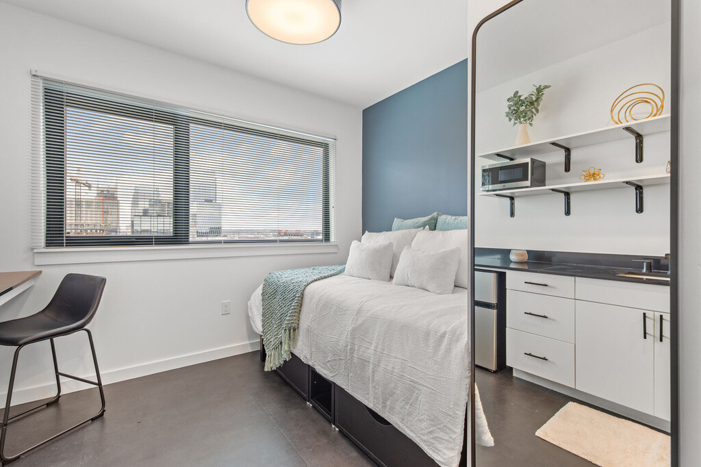 Welcome to modern and convenient living at Rutledge Flats. Our furnished studio apartments are located in up-and-coming Nashville, TN, and come with everything you need to streamline and enhance your daily life. Your contemporary microsuite includes a full-size bed with underbed shelves and cubbies and a bathroom with a Moen waterfall shower head. Enjoy community benefits like a community kitchen and lounge, a Zen courtyard, and onsite bike storage. Choose a home to fit your lifestyle at Rutledge Flats.