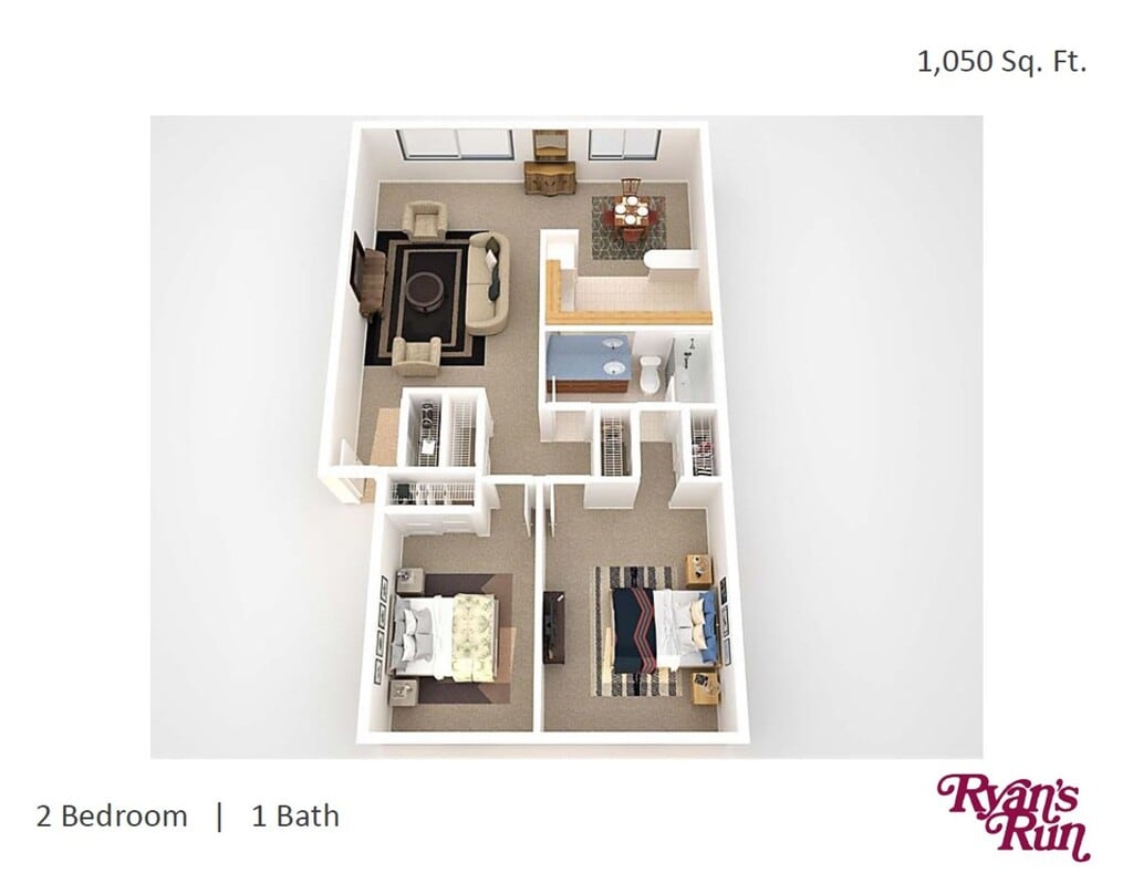 RYANS RUN APARTMENTS offers 1 to 2 Bedroom apartments starting from $1,665 and having 805–1,050 sq ft. Here is the current pricing and availability: