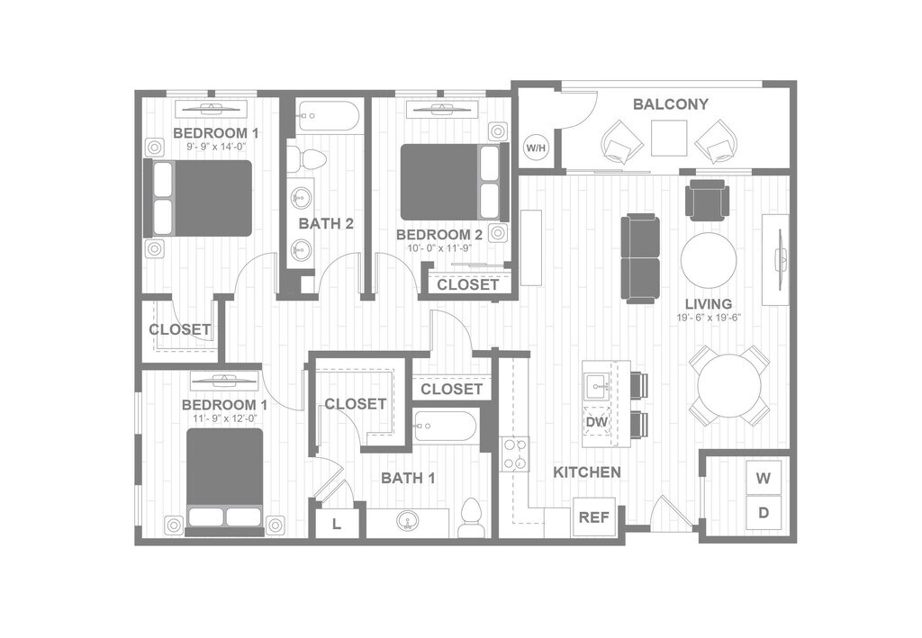 Apartment Model: A3From $1,4051 Bedroom, 1 Bath, 676 sq ftAvailable Now![]()