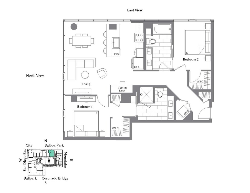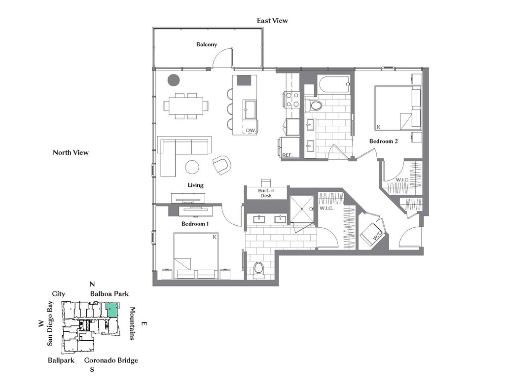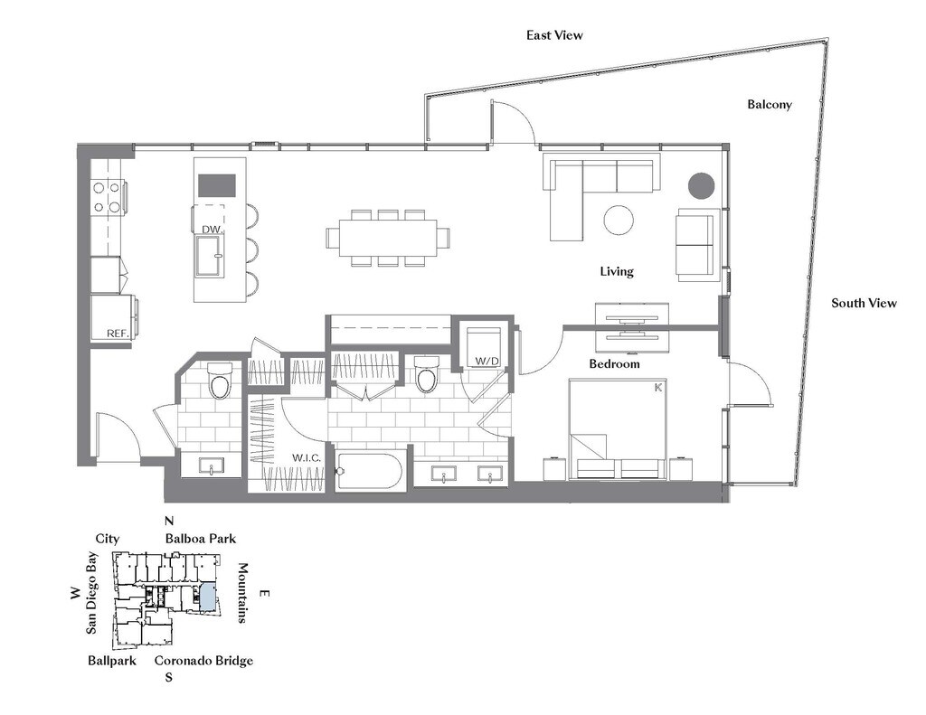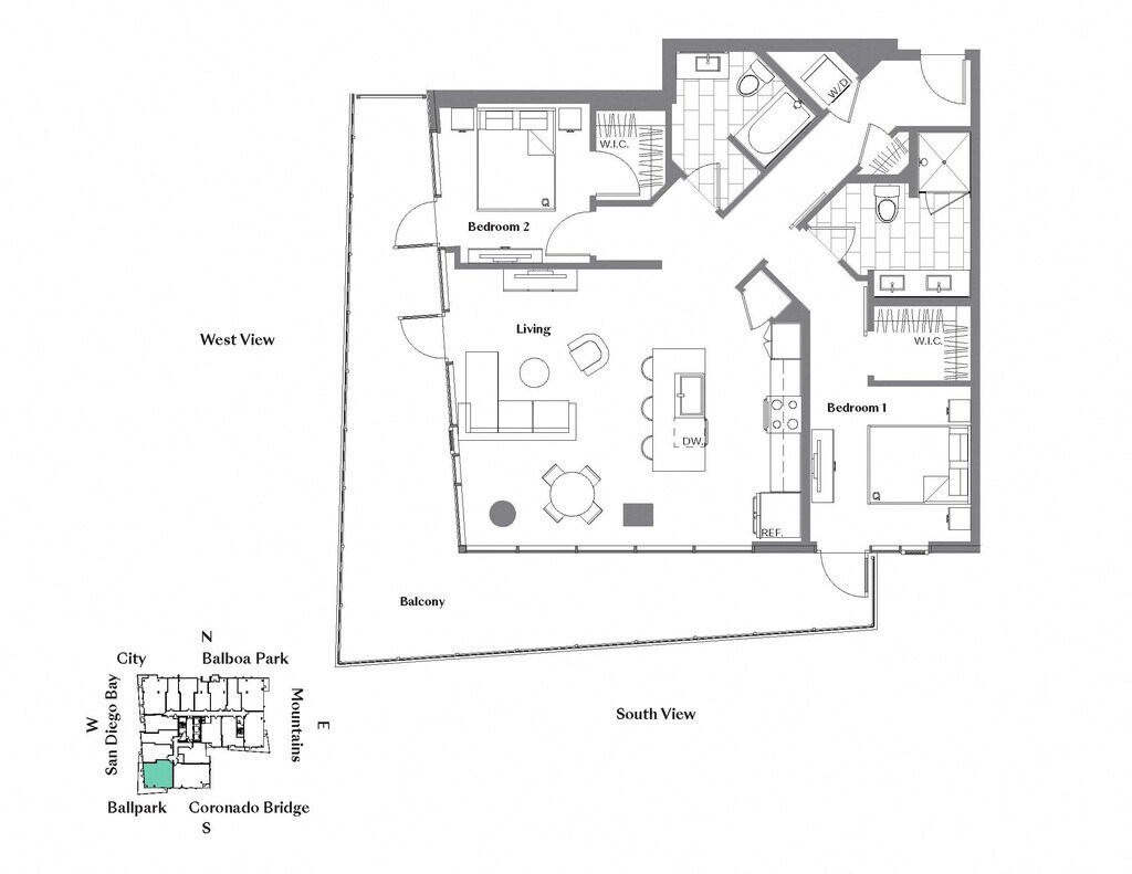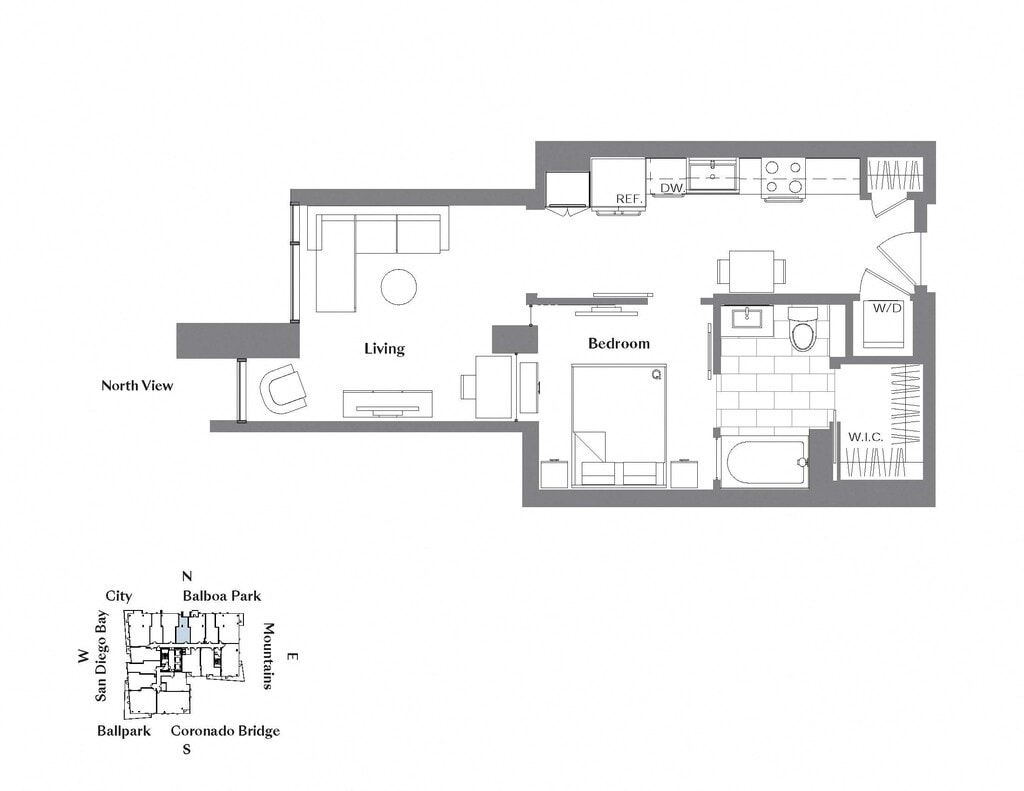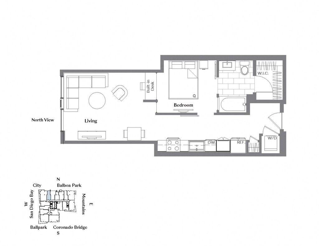 JA - Floorplan 1 Apartment Unit: 2007Apartment Model: JA$3,3501 Bedroom, 1 Bath, 633 sq ftAvailable NowFloorplan JD