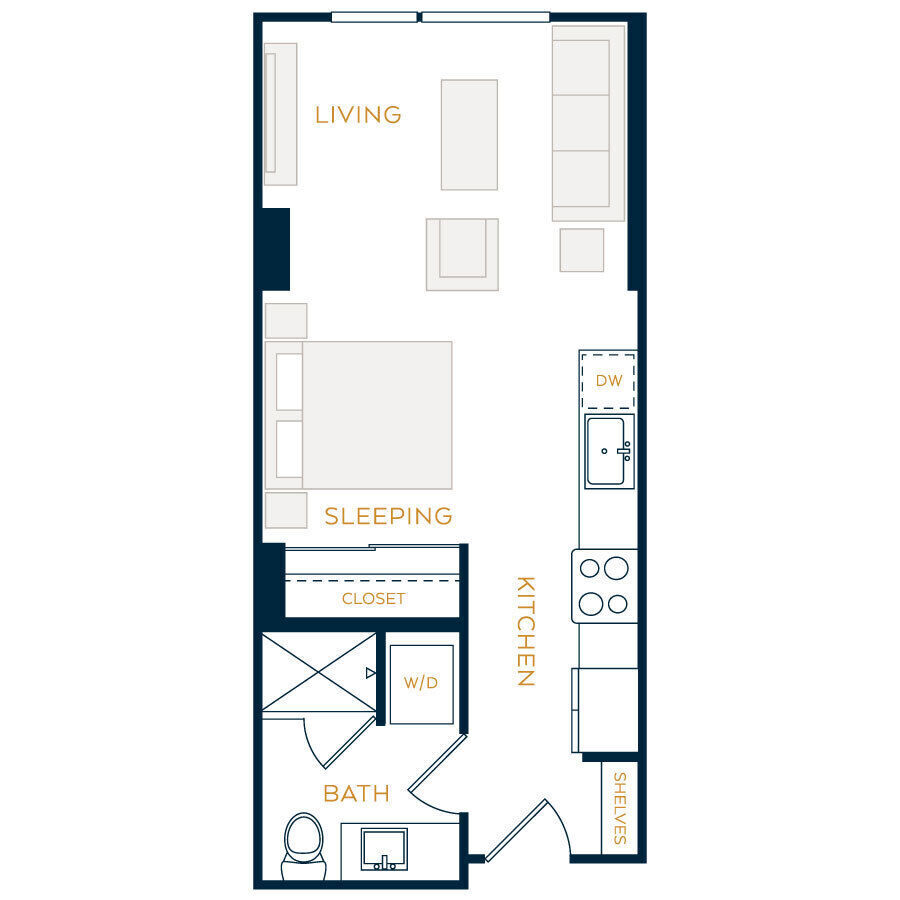 Apartment Model: S5$1,443Studio, 1 Bath, 634 sq ftAvailable November 20, 2025S5 - Floorplan 1 Apartment Unit: 518Apartment Model: S5$1,443Studio, 1 Bath, 634 sq ftAvailable November 20, 2025Floorplan S3