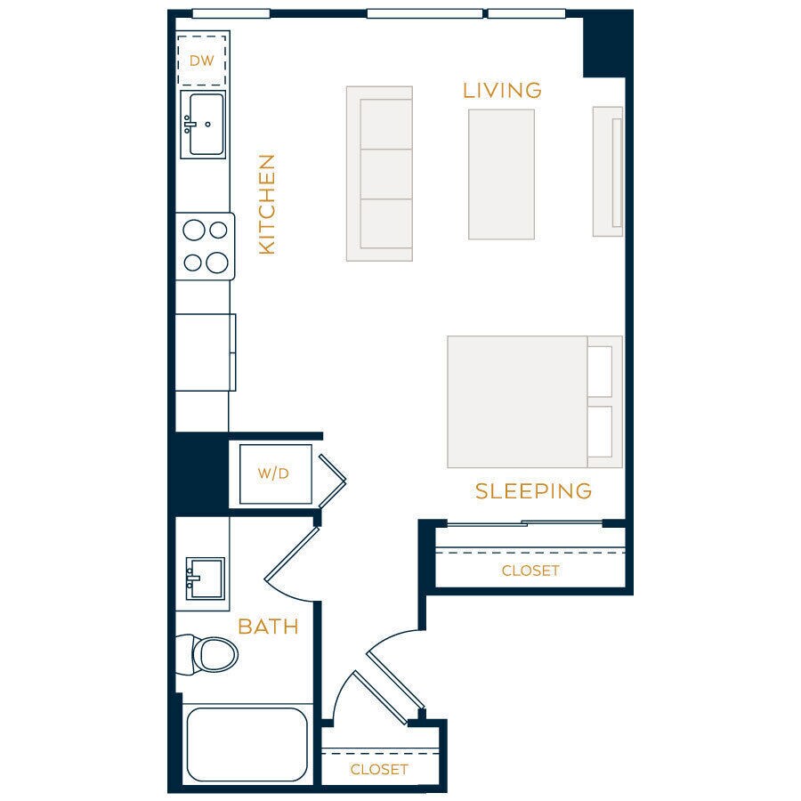 Studio, 1 Bath, 501 sq ftModel Gallery