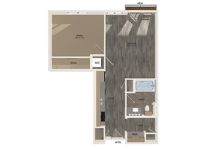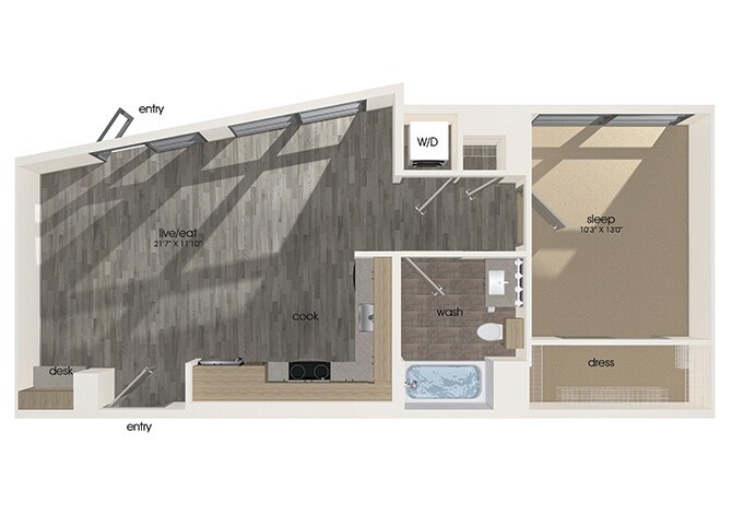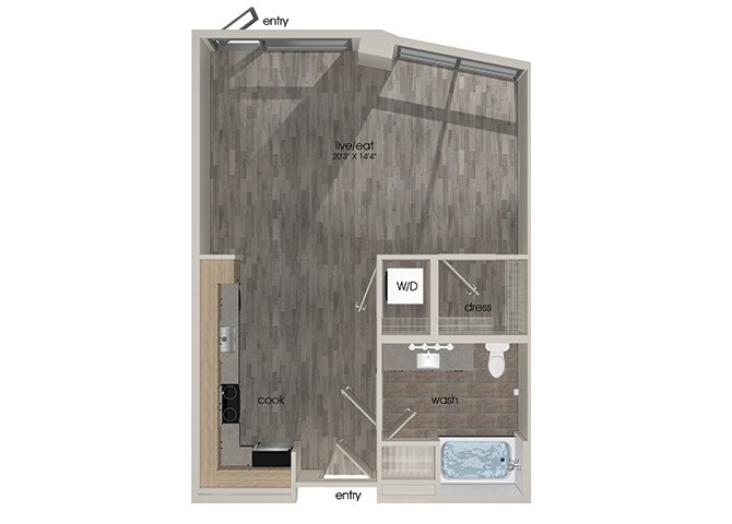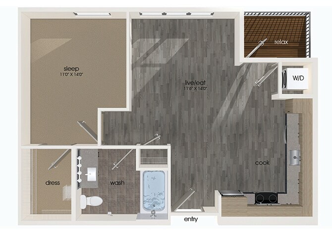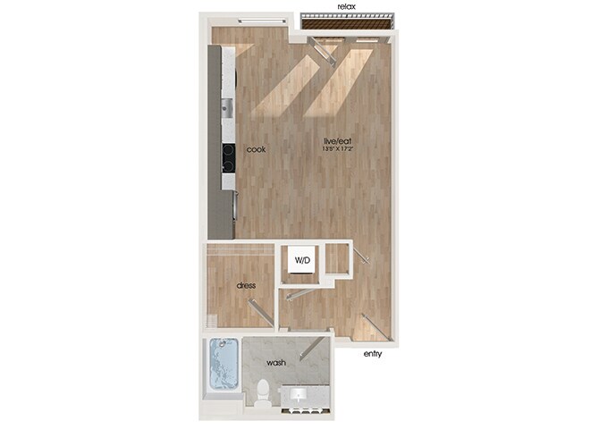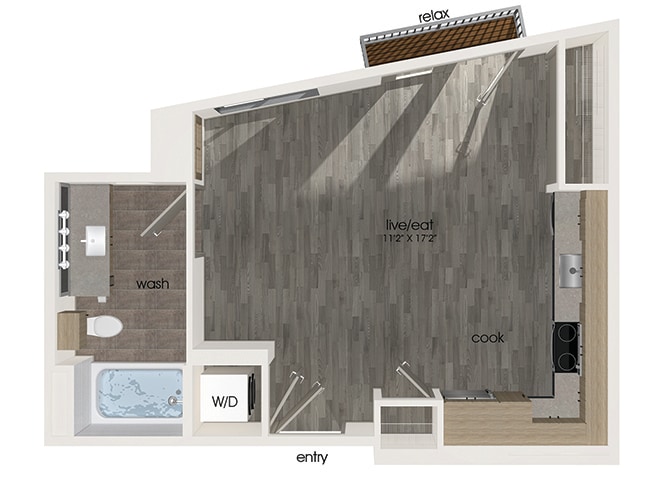 LW02 - Floorplan 1 Apartment Unit: 103Apartment Model: LW02$1,999Studio, 1 Bath, 592-603 sq ftAvailable NowFloorplan S10
