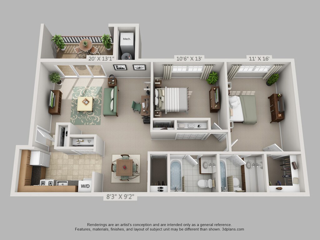 2 Beds, 2 Baths, 975 sq ftAvailable NowModel Gallery