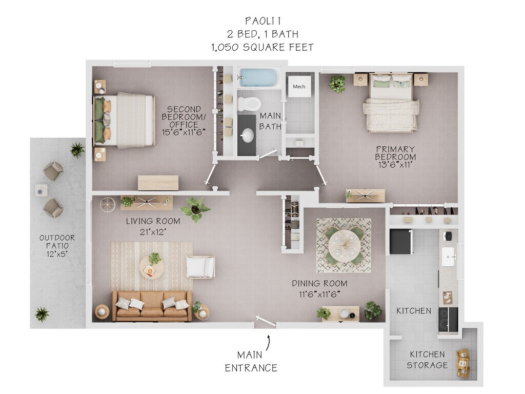 Apartment Model: Paoli IIIFrom $2,0452 Bedroom, 1 Bath, 1050 sq ftAvailable Now![]()