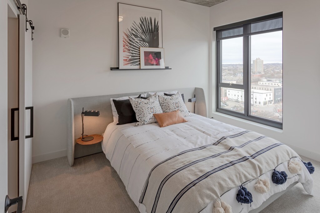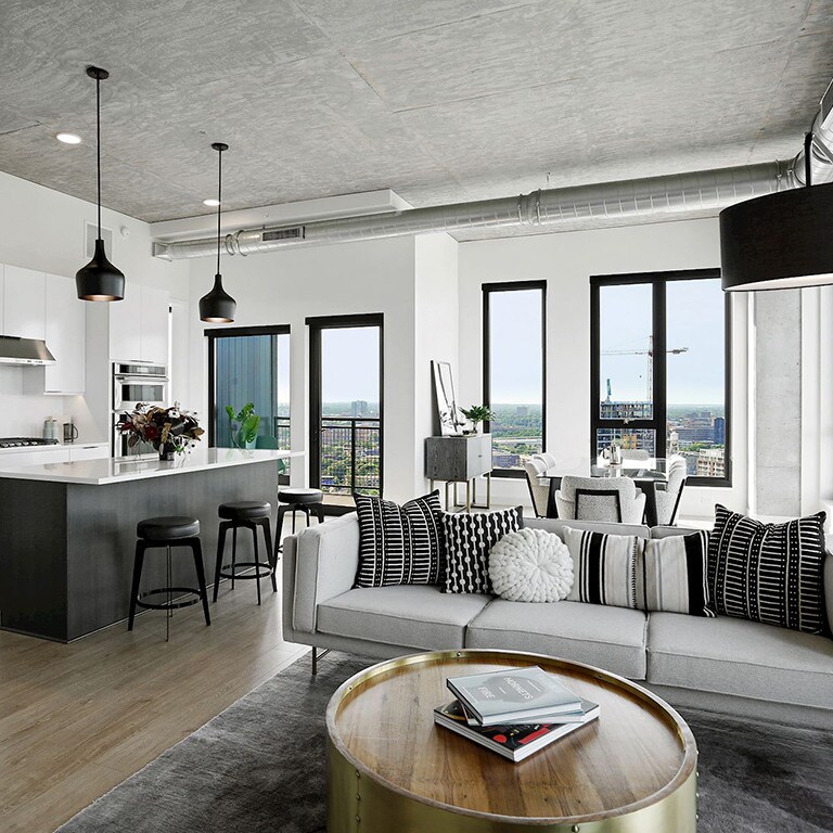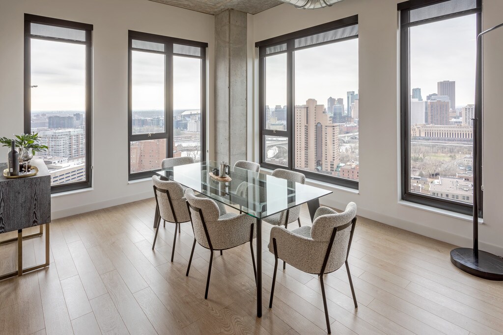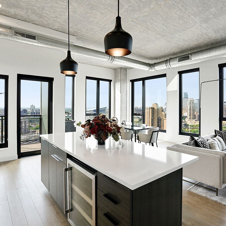 Rafter offers studio, one, two, and three-bedroom apartment homes and penthouses in Northeast Minneapolis, MN. Take advantage of our luxury apartment amenities like wood plank flooring, quartz countertops, stainless steel Whirlpool appliances, and private balconies with breathtaking views of Northeast Minneapolis at Rafter. We also provide the perfect pet-friendly apartment community. With our private dog run and dog wash, your furry friends will love Rafter just as much as you! Additionally, our apartment community offers a plethora of luxury community amenities like a state-of-the-art fitness center, co-working spaces, an outdoor theater, concierge services, and much more! Our building also features architectural details crafted by local makers, original art throughout, and amenity spaces inspired by nearby businesses. Rafter is a love letter to the northeast neighborhood. Rafter provides residents with the perfect apartment home and community lifestyle in Northeast Minneapolis.