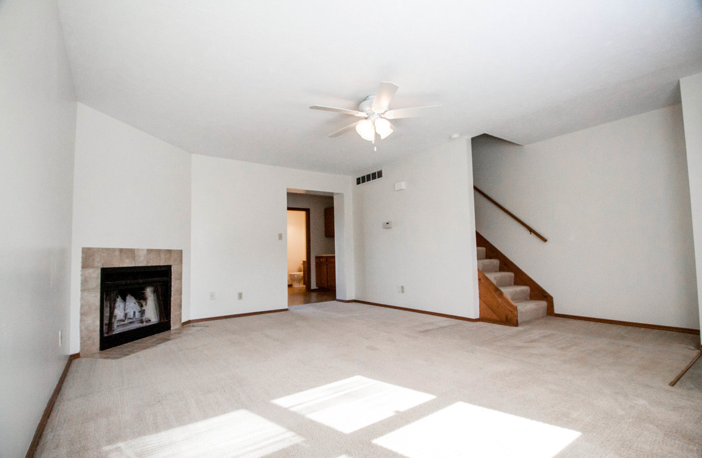 This charming 2-bedroom, 1.5-bath townhome combines comfort, convenience, and thoughtful design. The bright eat-in kitchen with modern appliances (including a dishwasher) opens to a cozy living room with a fireplace, creating the perfect space for both everyday living and entertaining. The home also features an unfinished basement with washer/dryer hookups, central air conditioning for year-round comfort, and two private entrances for added convenience. Step outside to your patio just off the kitchen—ideal for relaxing with morning coffee or hosting friends. Perfectly located near Hy-Vee, Stevenson Elementary School, and a wide variety of shopping and dining options on Bloomington’s east side, this townhome offers both neighborhood charm and easy access to everyday essentials. Please note: Photos and floor plans are for illustrative purposes only and may not represent every unit within the building. Furnishings shown may not reflect the specific items included with the unit.
