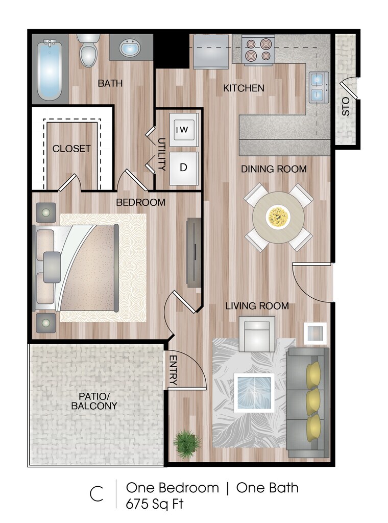 Apartment Model: CFrom $9491 Bedroom, 1 Bath, 675 sq ftAvailable NowFloorplansPhotos![]()