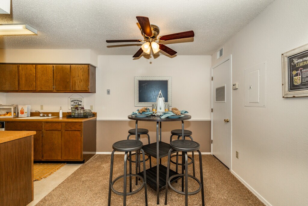 August 12, 2015The apartment I live in is a one bedroom, kitchen and living room dining room. It has a ceiling fan which was just newly replaced. The apartment is older but has been well kept. The complex is currently upgrading the outside of all the units. The maintenance department is excellent. They keep the grounds in excellent condition. There is a pool, a lake and several grilling areas for all to use. The kitchen has a disposal and a electric stove which was just upgraded. It has ample cabinet space. ...There are cable and phone jacks. The is a dishwasher. The complex does have units that have fireplaces. There are washer dryers on site. There are about 150 units. I have been here for five years. The rent is reasonable. I would recommend Raintree Apartments to anyone. They have one and two bedroom units. There are two closets. One os off the living room and the other is a walk-in in the bedroom.Property Manager Responded