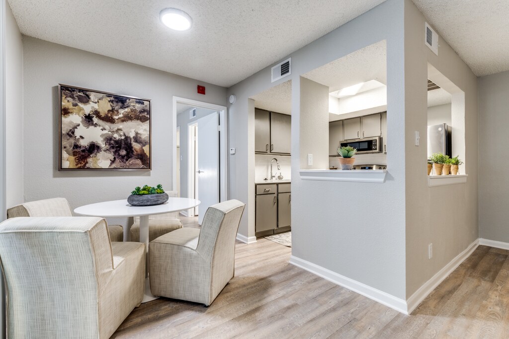 The community of Raleigh at Town Crossing in Mesquite, Texas offers spacious one and two bedroom homes for rent boasting stylish interior upgrades. Walk into your new home and discover quartz countertops, rich hardwood style flooring, custom cabinetry, washer/dryer connections, two-inch blinds and so much more. Take advantage of our complimentary covered parking, pet friendly social courtyards, a clubhouse with business center and impressive scenic views throughout the community. Raleigh's location in the DFW metroplex provides residents a quick commute to local attractions including the Mesquite Championship Rodeo, Devil's Bowl Speedway, Rodeo Music Hall and schools in the superior Mesquite Independent School District.