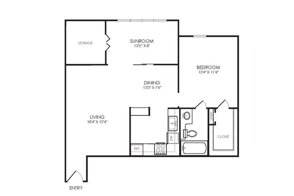 1 Bedroom, 1 Bath - Floorplan 1 1 Bedroom, 1 Bath