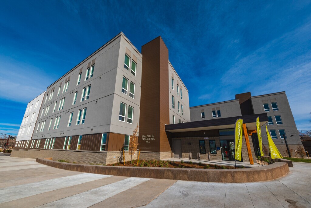 Ralston Gardens Apartments is a 102-unit family/workforce community located in the heart of Arvada’s “Ralston Valley” redevelopment area. The 4-story building is located at the intersection of Ralston Road and Garrison Street (Southeast Corner) in the center of a strong single family housing area as well as an established retail area. Ralston Gardens Apartments will consist of a mix of 66 one-bedroom units, 32 two-bedroom units and 4 three-bedroom units, accommodating AMI levels between 30% to 70%. The amenity area includes an on-site leasing office, community room, fully equipped fitness room, an enclosed private outdoor courtyard, a plaza at the building entrance and large secure indoor bike storage room. A bonus amenity is the Arvada Community Garden. It is accessible from the entrance of the Ralston Gardens Apartments through a landscaped “Paseo” pedestrian walkway, a project currently being designed and funded by the City of Arvada and the Arvada Urban Renewal Authority. This location provides walkable shopping and job opportunities to potential residents. In addition, there is an RTD Bus stop located next to the project on Ralston Road offering a transportation option to our residents to nearby Olde Town Station and the commuter rail (Gold Line) with transit service to downtown Denver and the rest of the RTD rail network. Immediate access to transportation provides residents vast employment opportunities within the community and Denver.