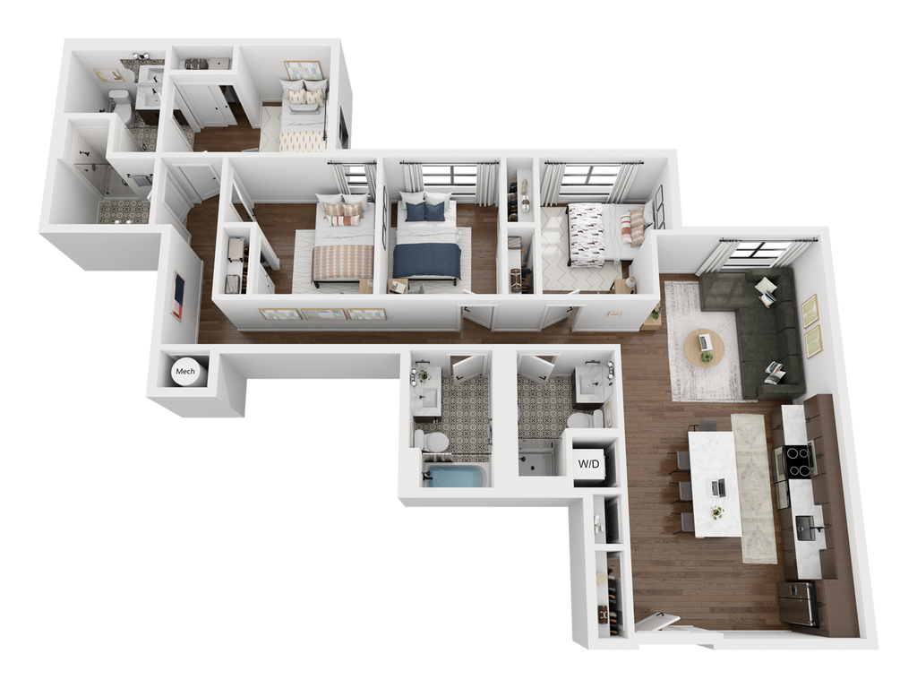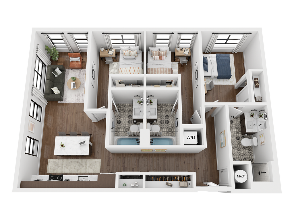 The Henry - Floorplan 1 Apartment Unit: SignatureApartment Model: The Henry$1,8592 Bedroom, 2.5 Bath, sq ftAvailable August 20, 20263 Bedrooms
