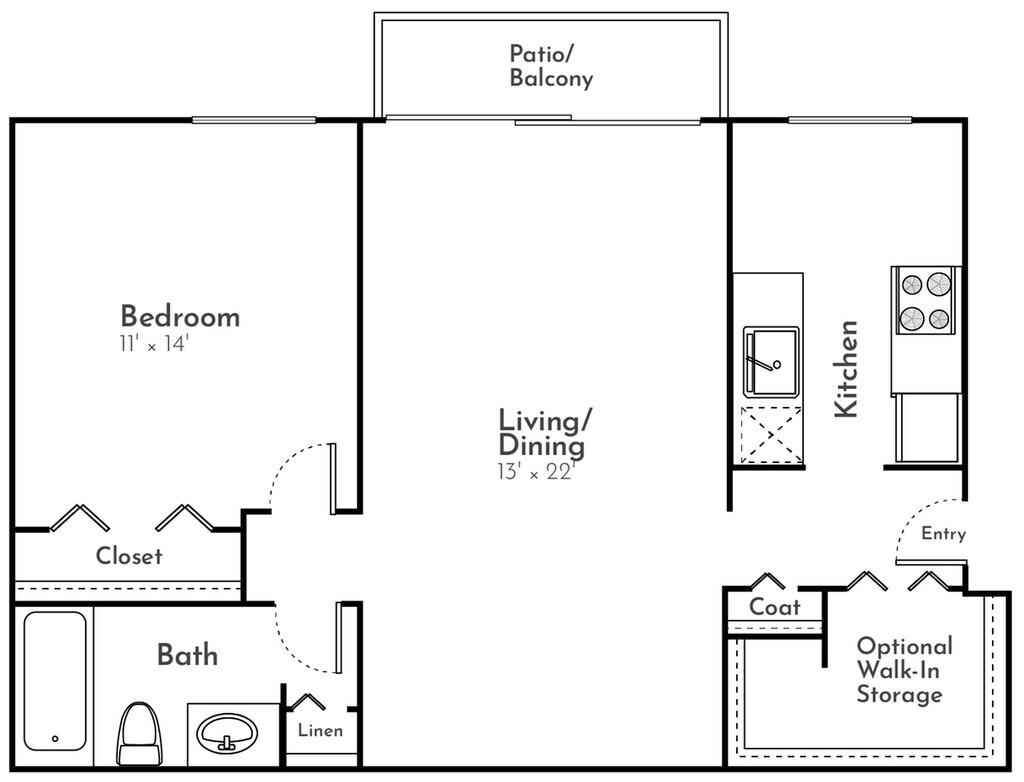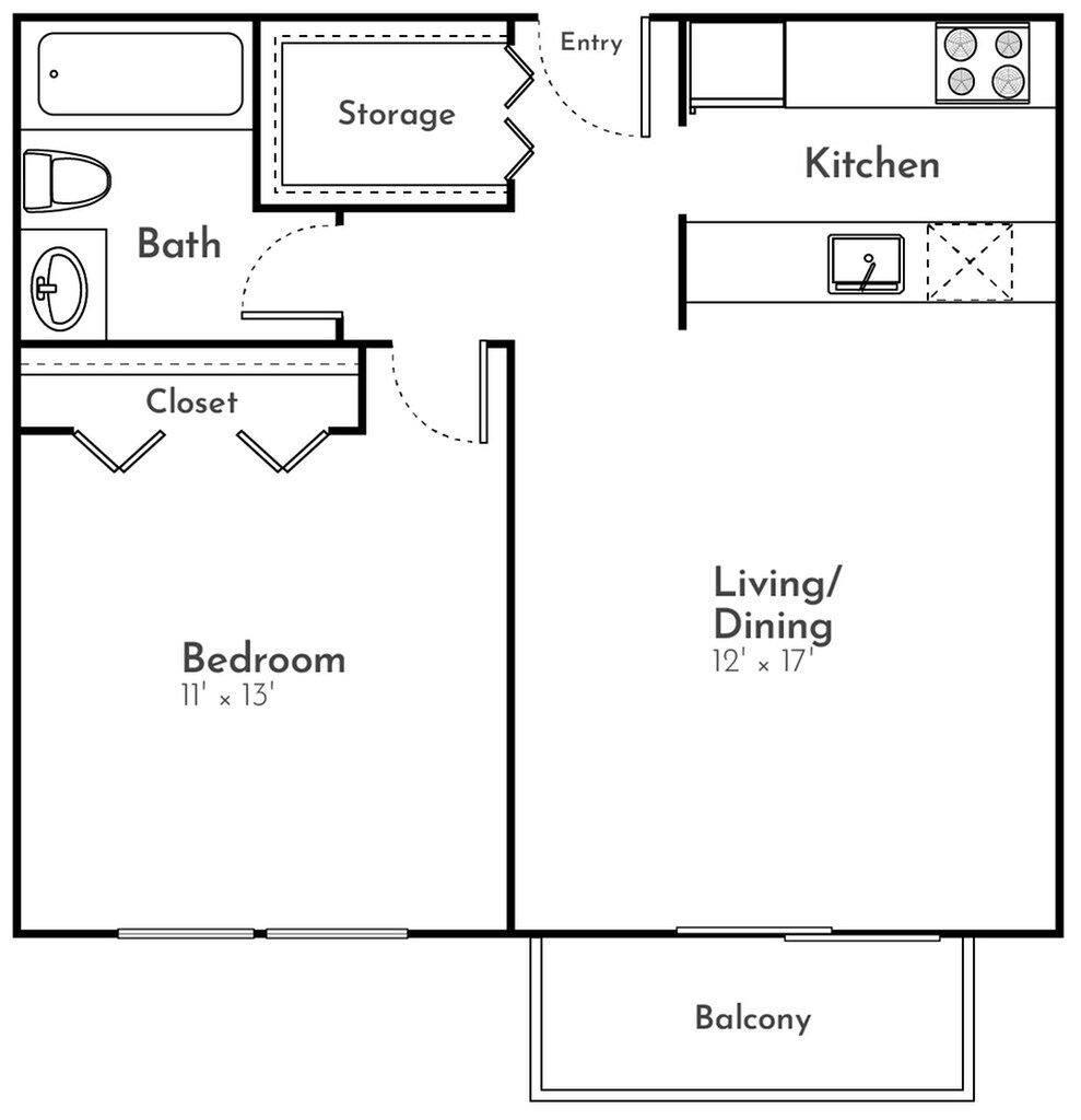Apartment Model: FernFrom $1,125Studio, 1 Bath, 532 sq ftUnavailableFern - Floorplan 1 1 Bedroom