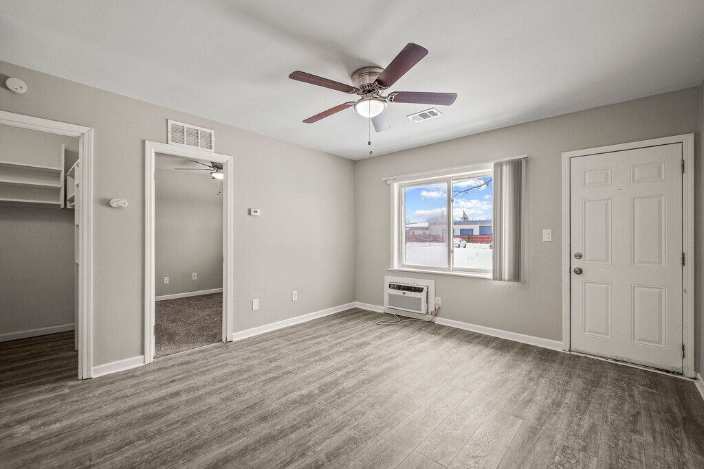 February 18, 2025Looks good in pictures, because it’s a remodeled updated picture of a 2 bedroom. The one bedroom has a stainless steel refrigerator that’s all the upgrades. Small one bedroom. Dark. Community laundry facility. The tub faucet isn’t even to the wall. ( a inch of pipe sticking out then the faucet. ) painted wood trim like plywood in the shower. No parking. No shoveling, I went on 2/18/25 to tour and had to walk through snow. I almost laughed when I stepped inside. Nothing like pictures posted. Just ...the 2 bedroom. Cold inside. Kitchen is the living room. Bathroom is in the bedroom. With just the leasing agent and I and obviously no furniture I felt like there were 2 too many people in the apartment. I have a cat and the whole time I’m like “well the litter box can only go in the middle of the entire apartment “ ?? seriously. No microwave. No central air. Laundry facilities are a mess. Not worth it. Even at $850.Read MoreReview from Apartments.com