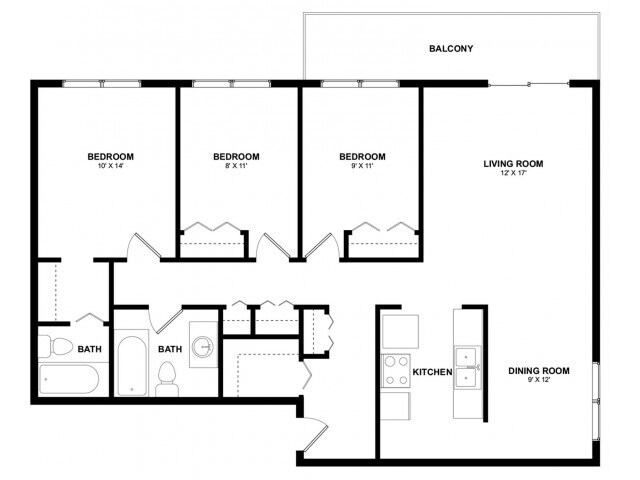 3 Beds, 1.5 Baths, 1246 sq ftAvailable NowLargest 3 BedroomThis is the largest 3 Bedroom at this PropertyModel Gallery