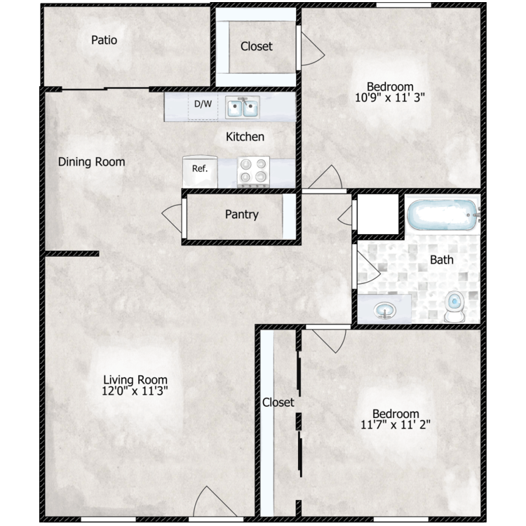 2 Beds, 1 Bath, 914 sq ftAvailable NowModel Gallery