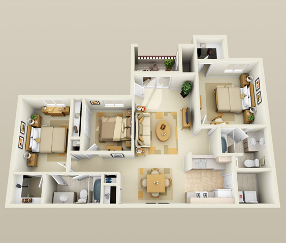 3 Beds, 2 Baths, 1205 sq ftModel Gallery