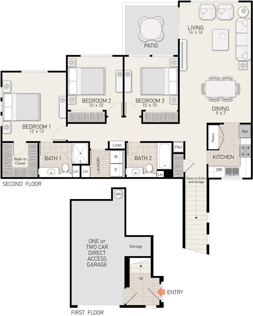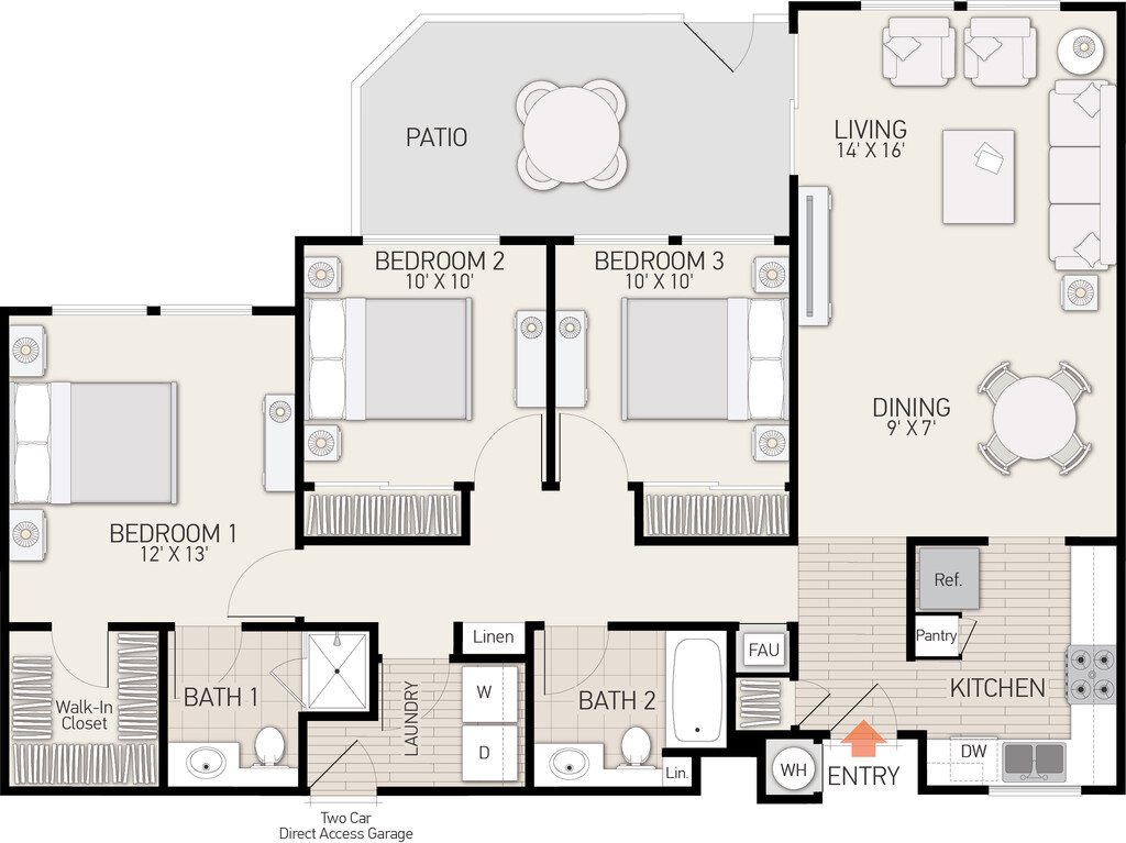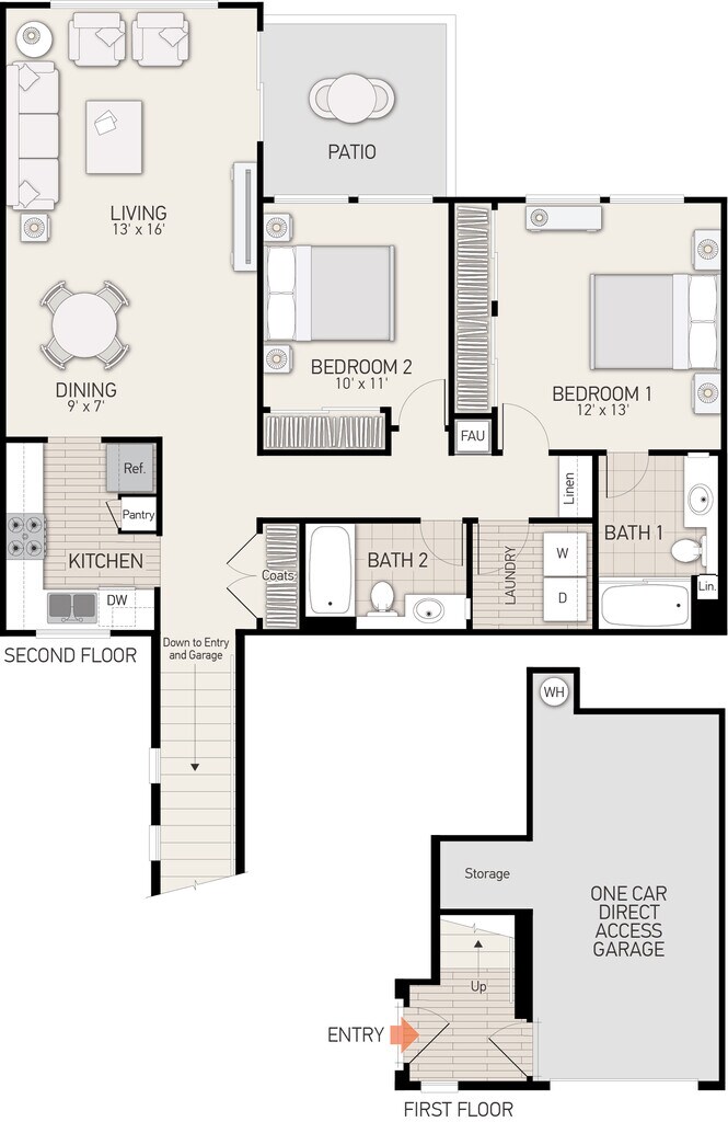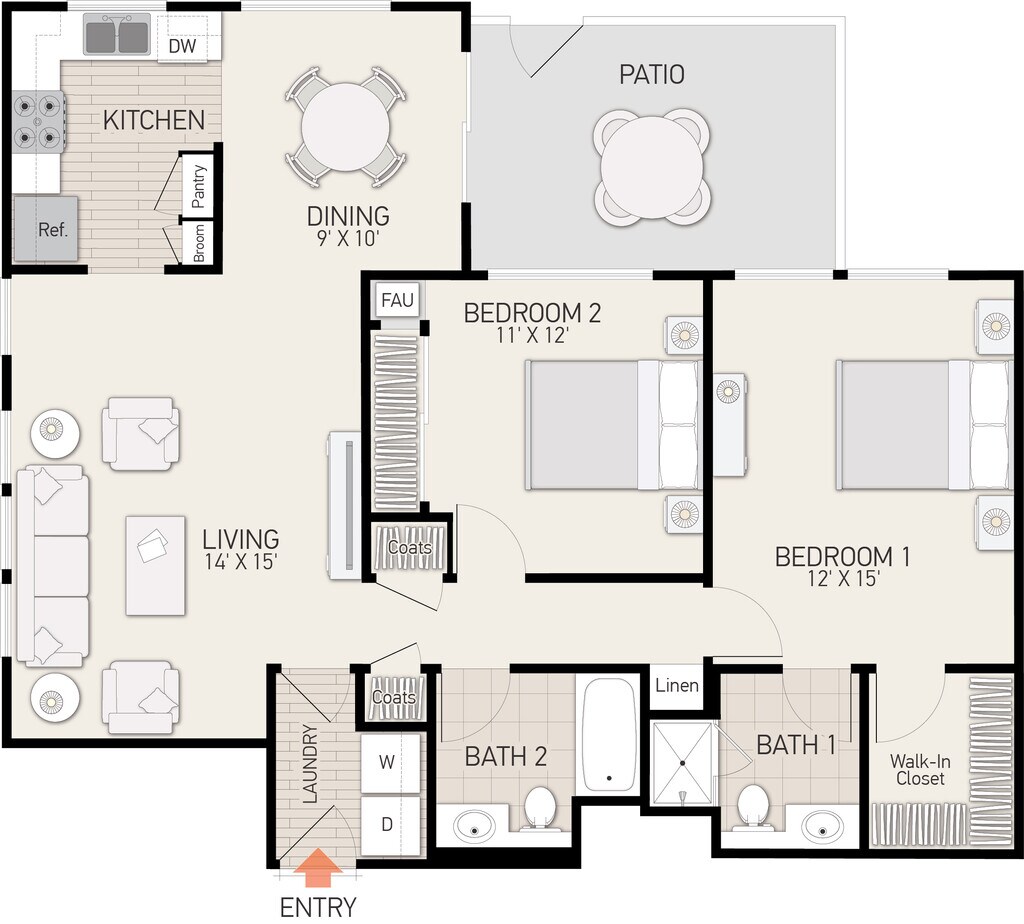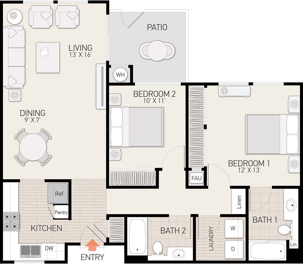 2 Beds, 2 Baths, 1044 sq ftAvailable NowModel Gallery