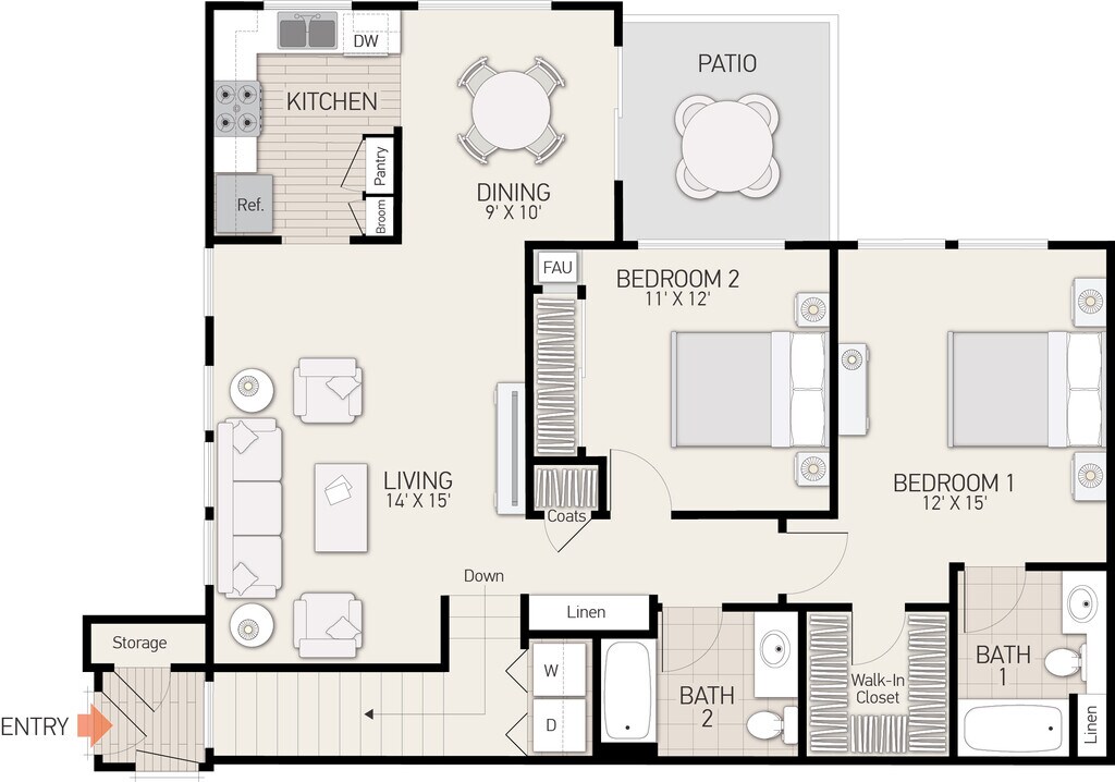 Plan 8 - Floorplan 1 Apartment Unit: 180Apartment Model: Plan 8From $3,7302 Bedroom, 2 Bath, 1136 sq ftAvailable NowPlan 9