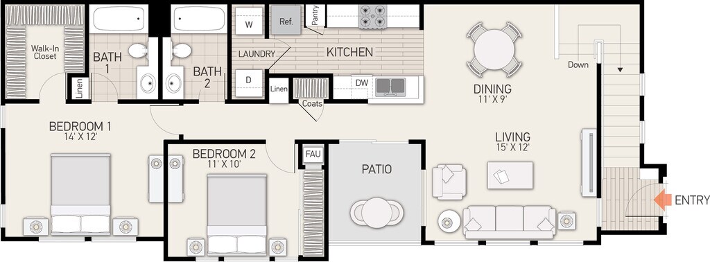 Apartment Model: Plan 2From $3,4652 Bedroom, 2 Bath, 1044 sq ftAvailable Now![]()