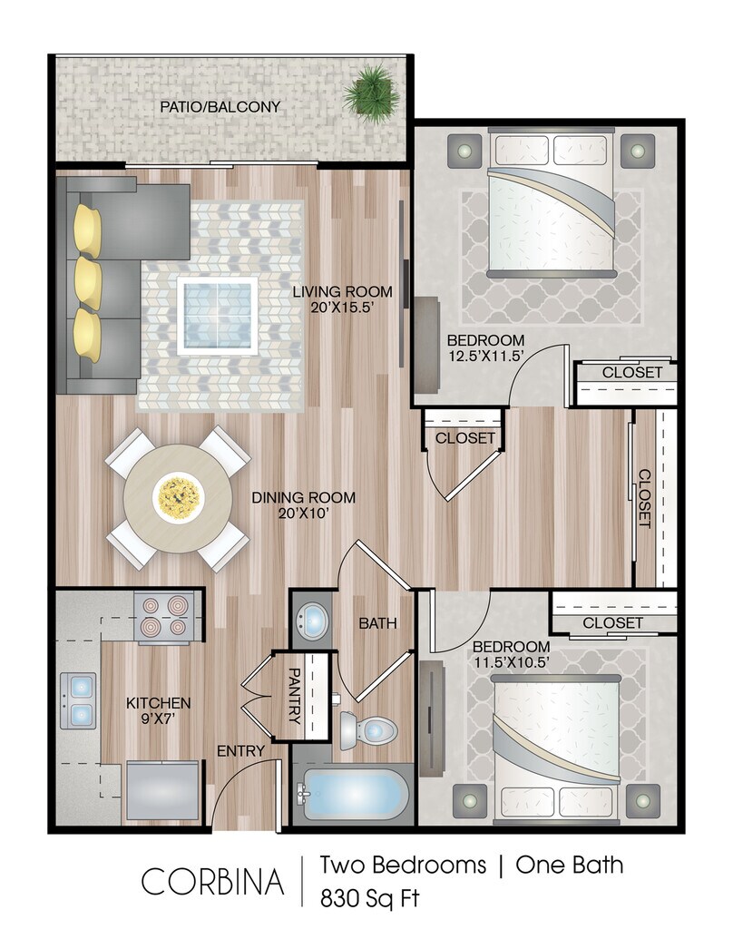 Apartment Model: Corbina$2,1852 Bedroom, 1 Bath, 830 sq ftAvailable December 15, 2025![]()