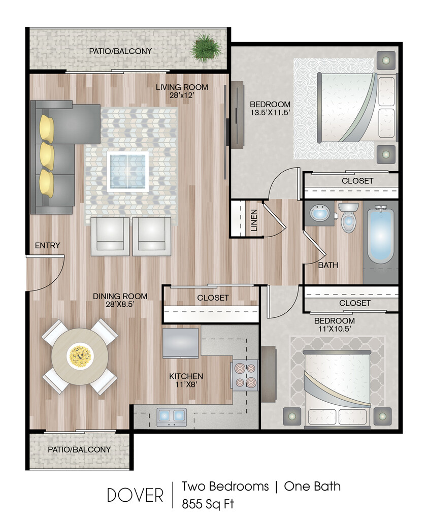 Apartment Model: DoverFrom $2,3152 Bedroom, 1 Bath, 855 sq ftAvailable January 19, 2026![]()