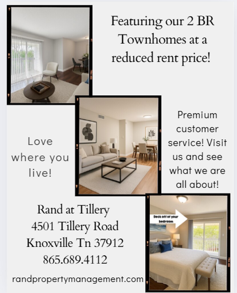 Spacious 2 Bedroom, 1.5 Bath Townhome – Updated & Move-In Ready! Welcome home to comfort and convenience at Rand at Tillery! This beautifully updated townhome features a thoughtful layout, modern finishes, and access to top-tier amenities—all in one of Knoxville’s most desirable locations.