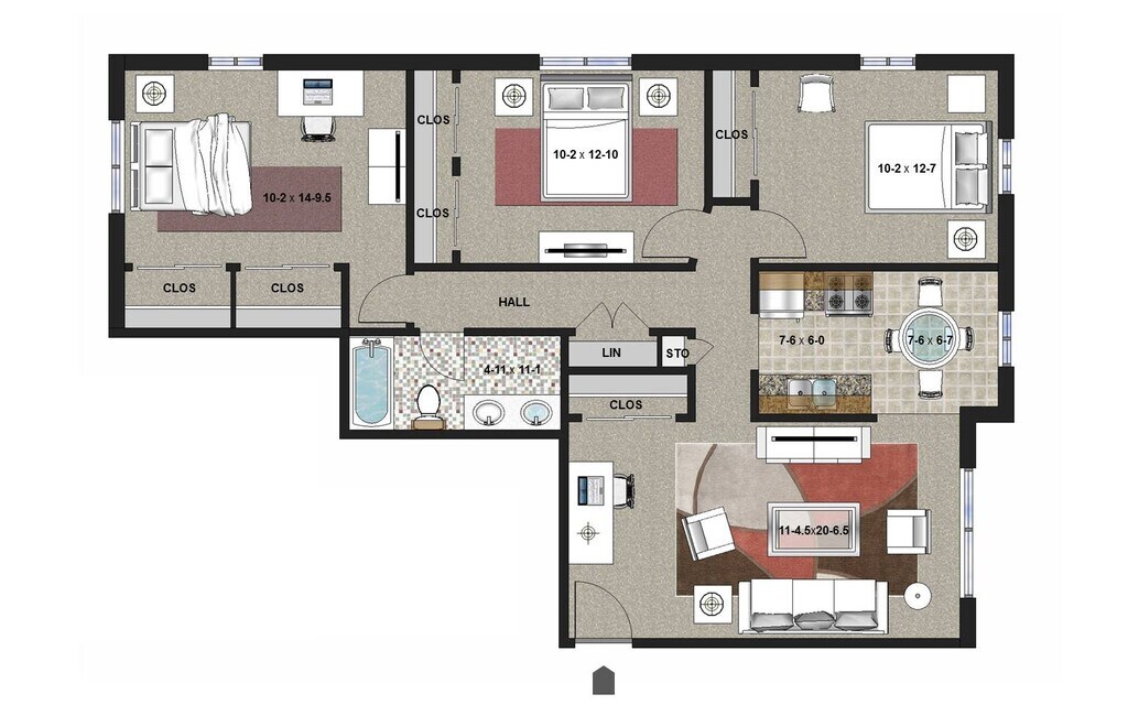 3 Bedroom - Floorplan 11 Apartment Unit: 1Apartment Model: 3 Bedroom$1,5673 Bedroom, 1 Bath, 1005 sq ftAvailable June 7, 2026