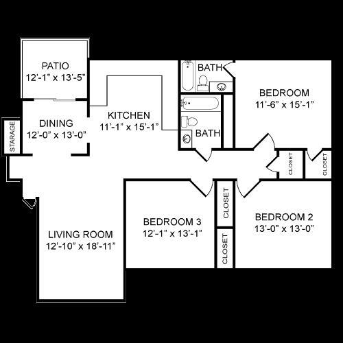 The Cotswold - Floorplan 2 Apartment Unit: 0144Apartment Model: The Cotswold$1,1501 Bedroom, 1 Bath, 935 sq ftAvailable Now![]()