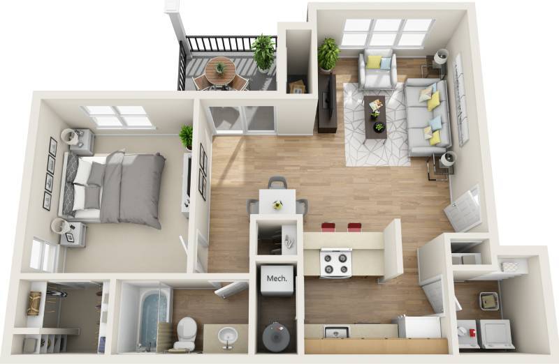 1 Bed, 1 Bath, 581 sq ftAvailable NowModel Gallery