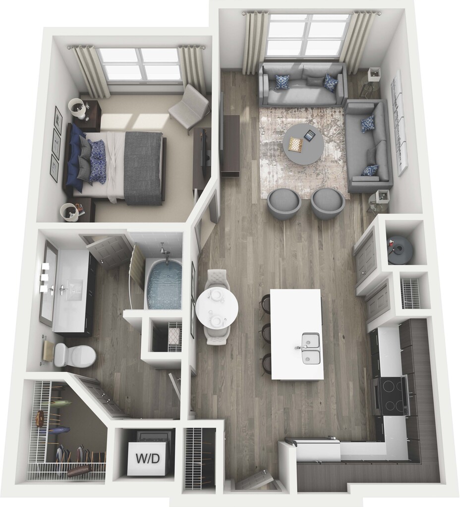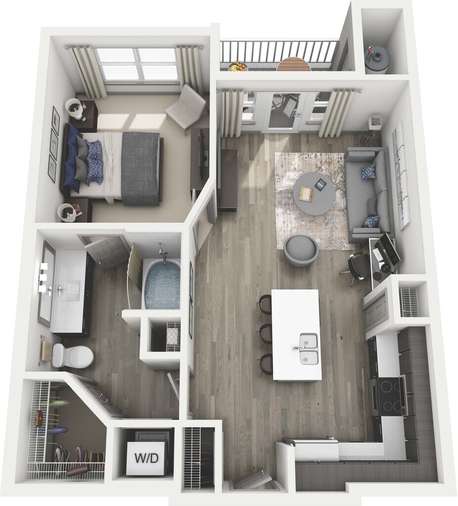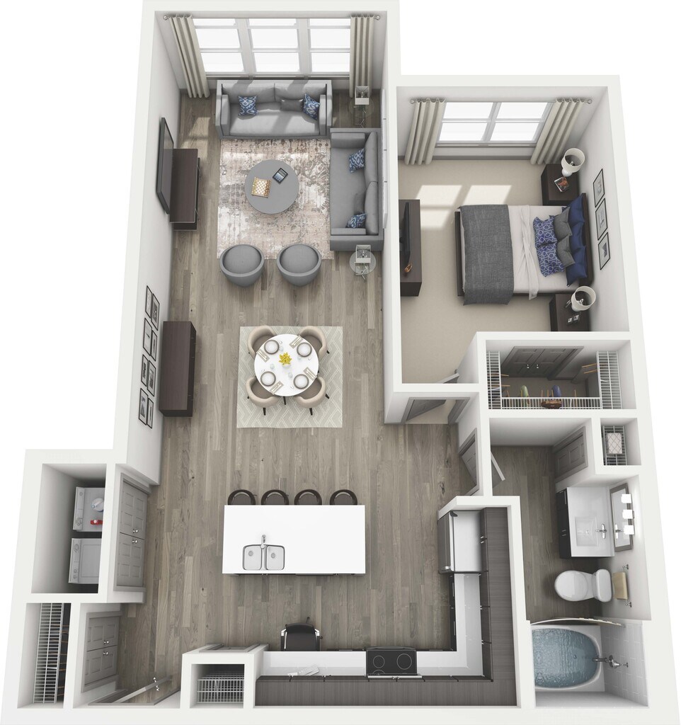 1 Bed, 1 Bath, 673 sq ftModel Gallery